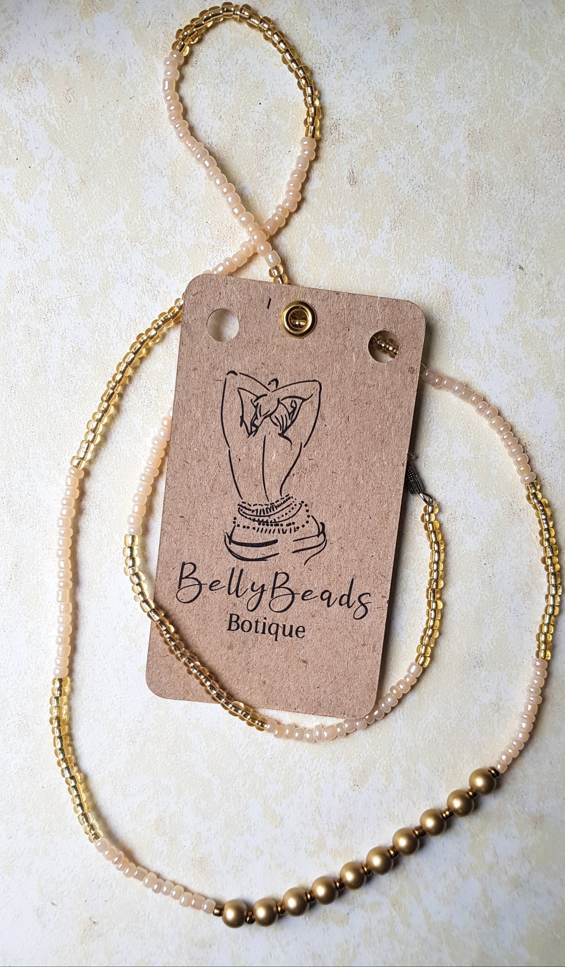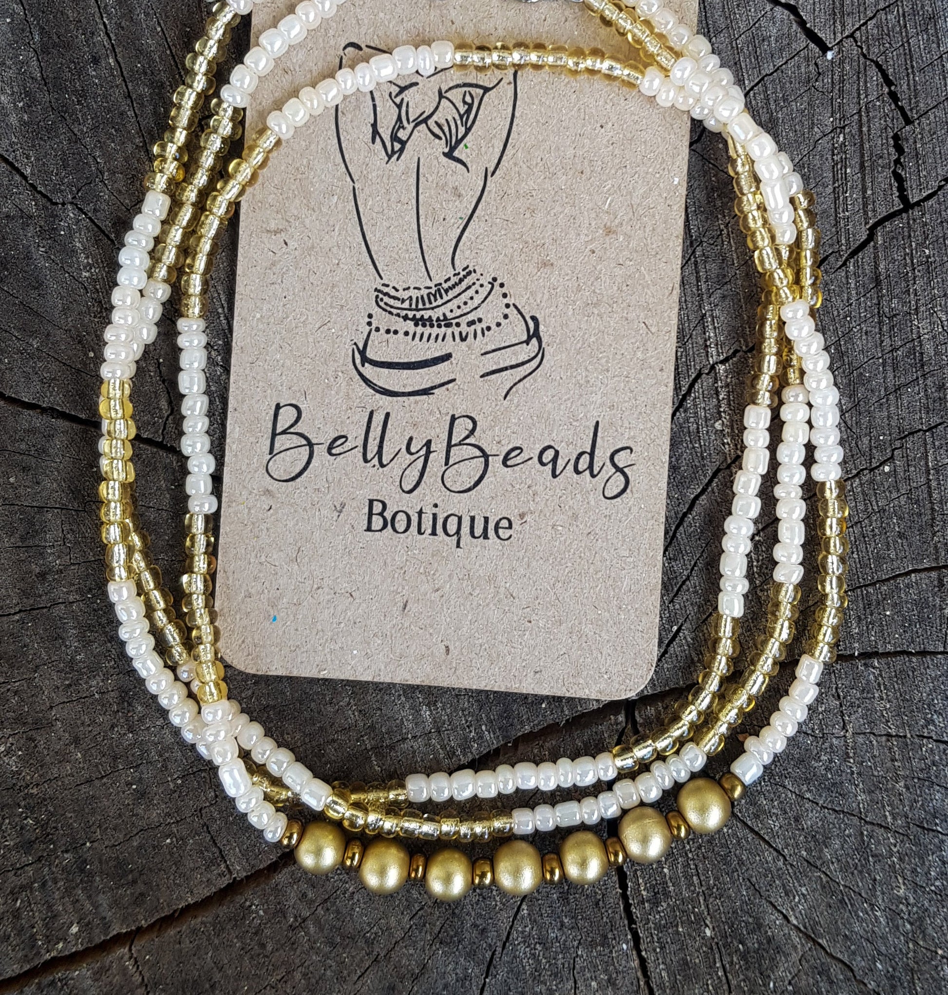 This waist beads range blends soft champagne tones with radiant gold finishes to embody sophistication, confidence, and timeless allure.
