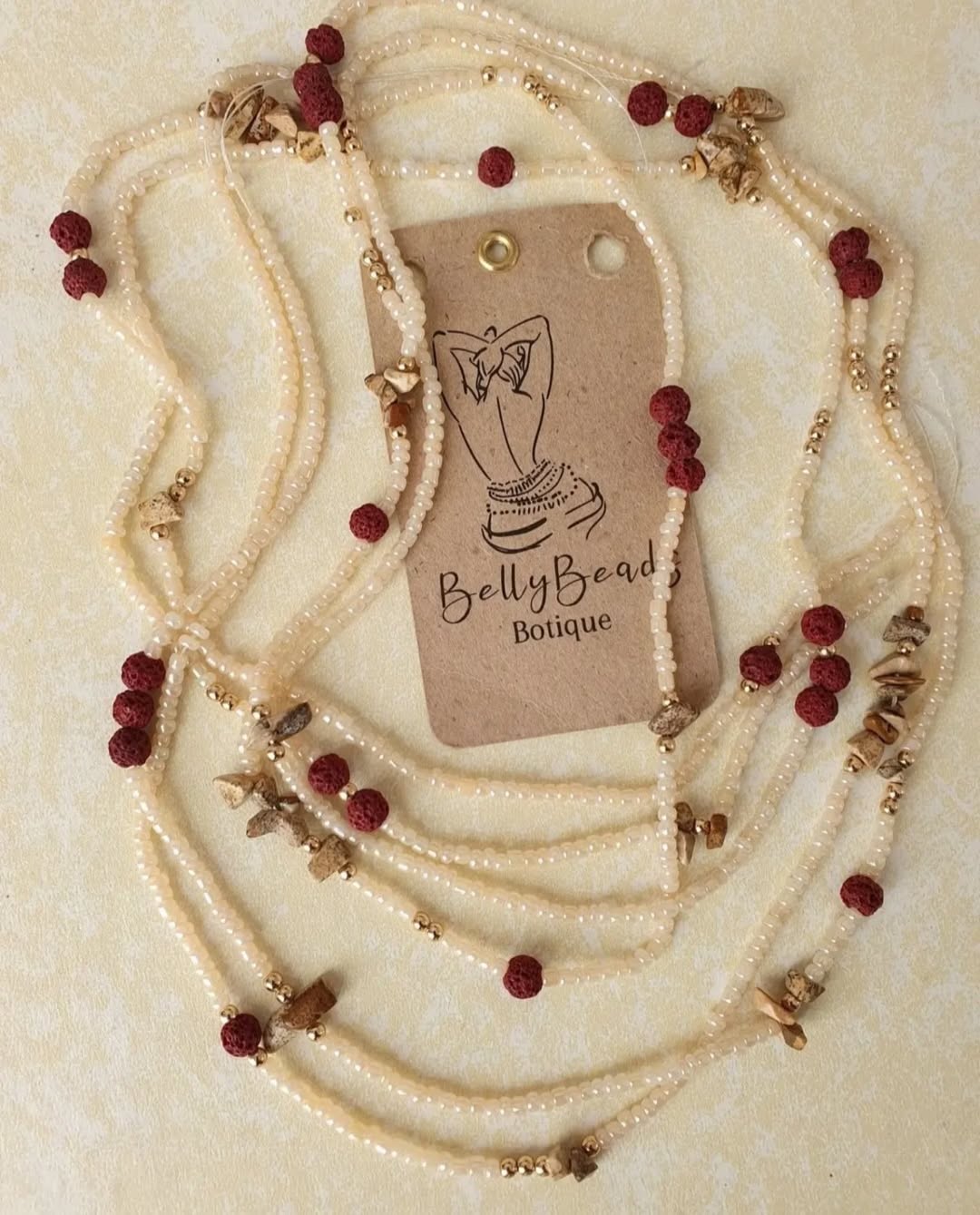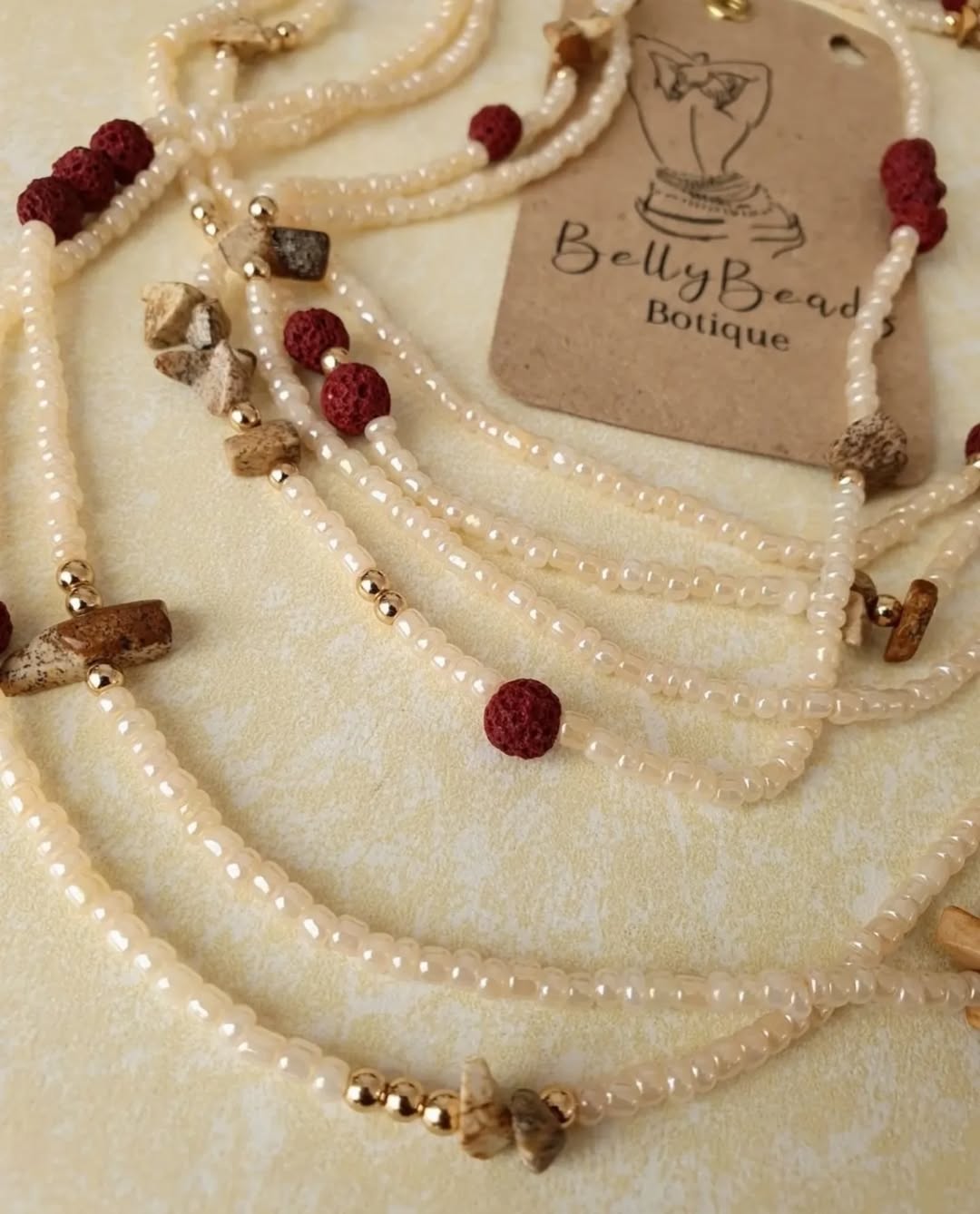 The Sweet Mahogany waist beads range blends warm, earthy tones with the grounding power of lava beads and Picture Jasper crystals.